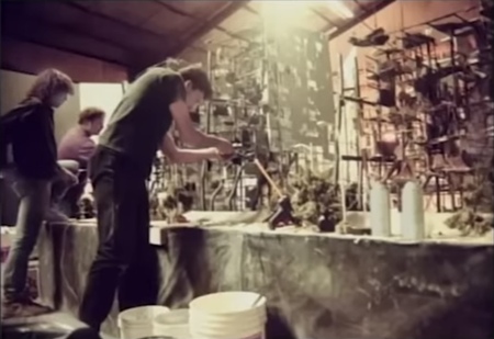 Большинство широких планов будущей войны снято с помощью миниатюрных декораций и моделей. Студия Fantasy II под руководством Майкла Джойса создала масштабный макет разрушенного города (примерно 1:6). Прочные элементы отливали из гипса Hydrocal, ломкие — из Pyrocel для эффектных разрушений. Кирпичи, балки и обломки покрывали пылью для натурализма. Макет окружили 15-метровым задником с панорамой ночи, что позволяло снимать под любым углом. Съёмка велась на крупноформатную плёнку VistaVision для высокого разрешения и минимального зерна.