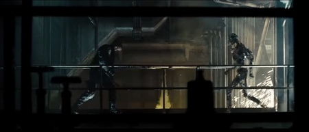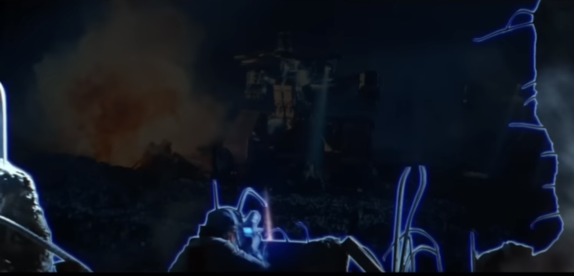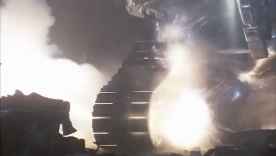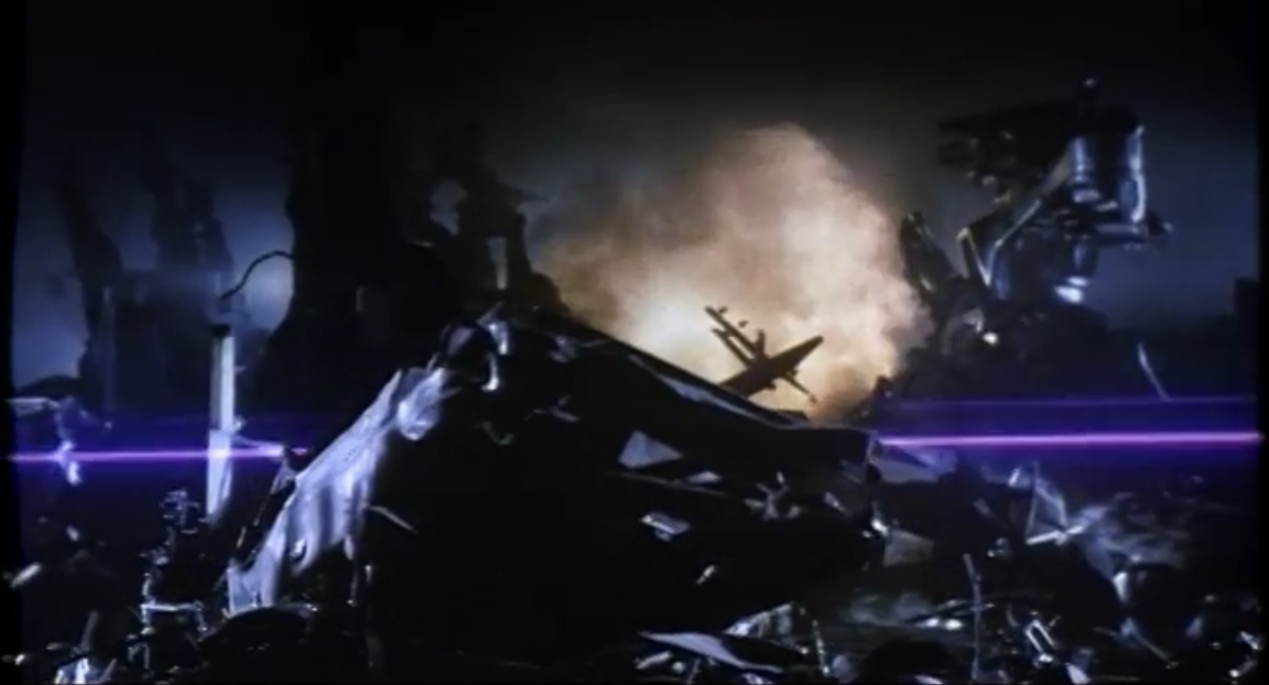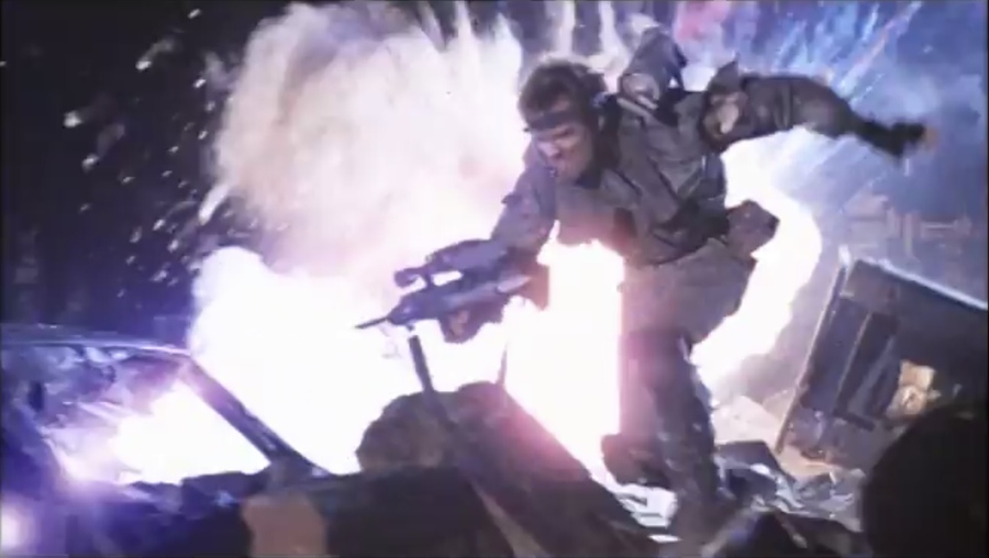 Сцена флэшбэка из будущего: бой людей и машин (2029 год)