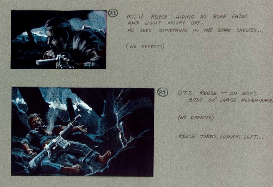 Лазерные выстрелы и световое оружие. В 1984 году, для оригинального «Терминатора», Fantasy II нарисовала лазеры как белые полосы с пурпурным ореолом вручную на плёнке. В T2 решили немного обновить стиль: лазерным трассерам придали вид следующих в перспективу трассирующих пуль — выстрел начинается ярким, а потом быстро тускнеет и сужается, летя вдаль. Для этого аниматоры вручную создавали каждый лазерный болт: рисовали сердцевину (почти белую) и вокруг — размытый цветной контур, по мере движения кадр за кадром уменьшали длину и яркость линии.