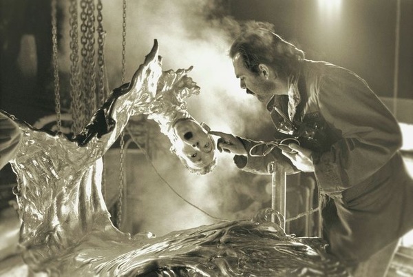«Работа с ртутью была просто безумием; я имею в виду, с этой штукой невозможно справиться, потому что она не держалась на месте. Даже если просто положить её на идеально ровную поверхность, она всё равно пыталась бродить сама по себе, эти маленькие шарики. В итоге я узнал, что ртуть можно приклеить. У меня был аэрозольный клей, и я просто распылял его немного на металлическую поверхность, чтобы закрепить ртуть. Они были похожи на маленьких бегающих зверьков или муравьёв. Все эти маленькие шарики ртути — это было безумие. Мы думали, что с ртутью будет легко справиться, но это оказалось не так. Это было невозможно. Мы думали, что это просто — иметь дело с ртутью, но это был кошмар», признавался Роберт Скотак, лично занимавшийся токсичным металлом (и поплатившийся лёгким отравлением). Только финальная стадия — когда большой слиток начинает приобретать форму Роберта Патрика — была дорисована компьютером усилиями ILM