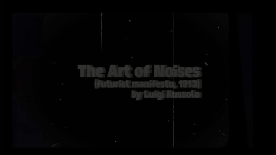 Для этого проекта был выбран манифест итальянского художника и композитора Луиджи Руссоло. В своем манифесте Руссоло первым в истории предложил понятие шумовой музыки — задолго до появления пионеров «конкретной музыки». В своем тексте Руссоло делает краткий экскурс в историю музыки, чтобы проследить, как возник звук, рассматривается и используется человеком с домузыкальных времен, производным, например, от натянутой тетивы.