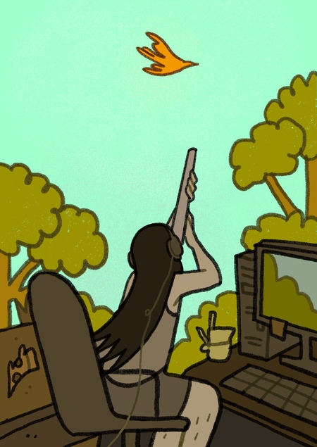 «Птица» — анимационный фильм о геймерше, что проводит всё своё время за компьютером, пытаясь побить свой же рекорд.