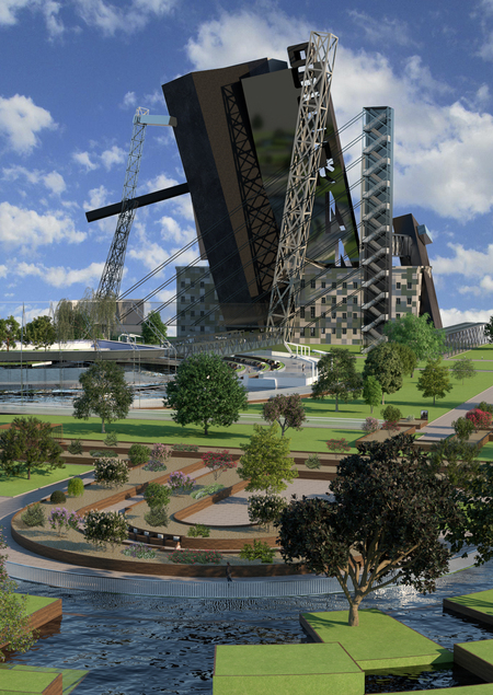 При проектировании парка вдохновением послужили работы советского архитектора Якова Чернихова. Так, план парка построен на основе графической композиции Чернихова, на входах возведены несколько его работ и на амфитеатре будут голограммы с произведениями архитектора. Возведенные постройки в основном из бетона, металла и стекла, сочетающиеся с временным фасадом музея архитектуры, за которым и построен парк. Импульс конструктивизма Чернихова преодолевает время и доминирует в мире современной архитектуры.