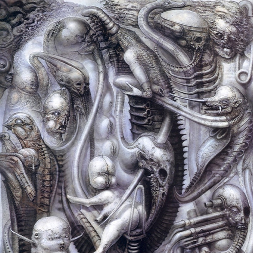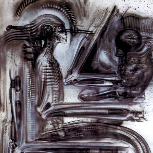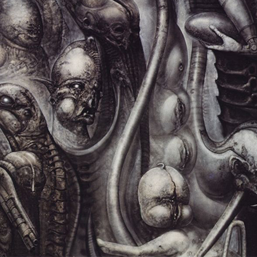 Датасет содержит в себе картины швейцарского художника Ханса Гигера. Было интересно посмотреть как нейросеть справится со столь необычным стилет изображения.