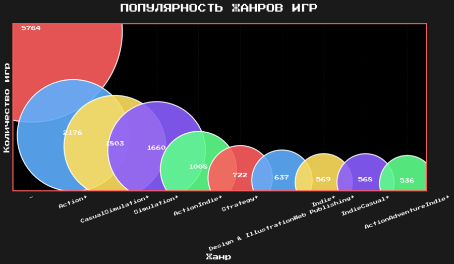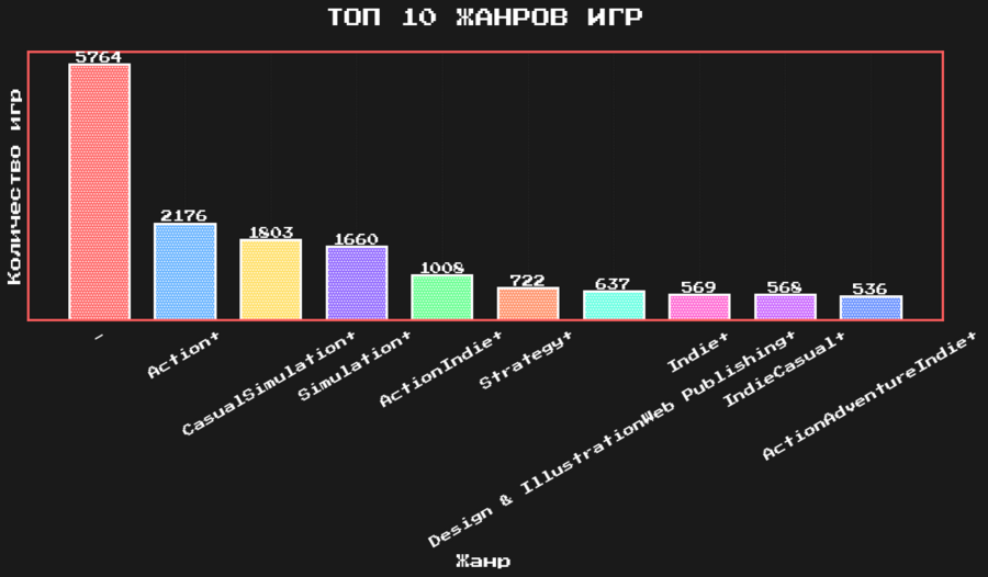 Преобладание определённых жанров может быть связано как с предпочтениями аудитории, так и с тем, какие типы игр проще создавать инди-разработчикам.
