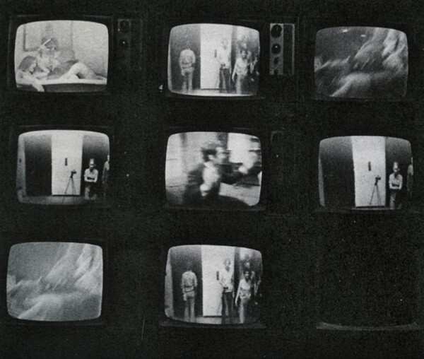 Такой подход заметен и по инсталляциям, создававшимся художниками: например, «Коридор» Брюса Наумана, в котором идущий по узкому проходу зритель двигался к телевизорам, демонстрирующим его собственное удаляющееся изображение, передающееся с камеры за его спиной, или «Цикл стираний» Фрэнка Джиллета и Айры Шнайдер, где в конструкции из девяти телевизоров посетители галереи наблюдали одновременно кадры из реальных телевизионных передач и свои фигуры, демонстрируемые с задержкой на разное время.