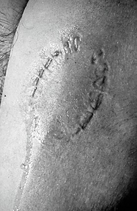 Получается, с одной стороны, здесь фотография позволяла навсегда оставить неизменным рисунок на коже, который в реальности должен был через некоторое время разгладиться, а с другой — создать тройной след — отпечаток на пленке отпечатка на бумаге, созданного отпечатком зубов на коже.