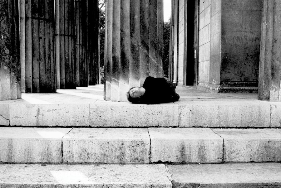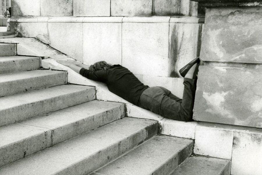 В этом фрагменте в пример можно привести работы, которые еще нельзя назвать перформансом, потому что художник здесь — снимает, а не производит действие, но которые уже очень близко подходят к акциям, чье время придет всего на пару лет позже их создания.