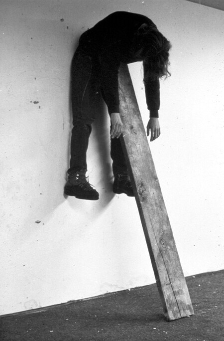 В его снимках «Кусок доски» тело художника и так предстает неким безвольно повисшим объектом, который не в состоянии изменить собственное положение. Хотя, конечно, в реальности у Чарльза была жизнь и до, и после перформанса — он был способен управлять своим положением в пространстве, на фотографиях он навсегда остался пригвожденным к стене. В то время, как доска фиксировала тело в конкретном месте, съемка замораживала всю ситуацию во времени.