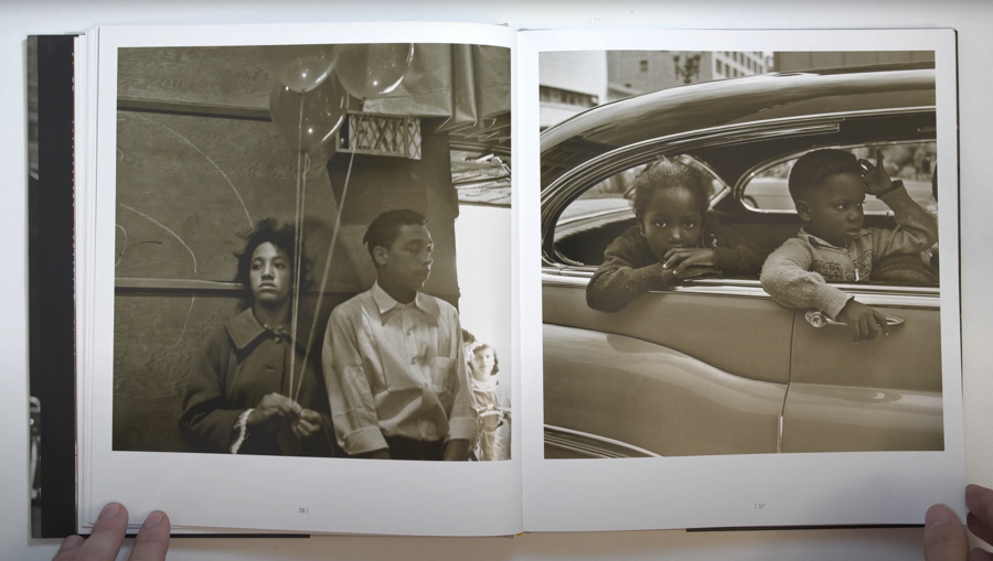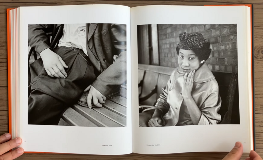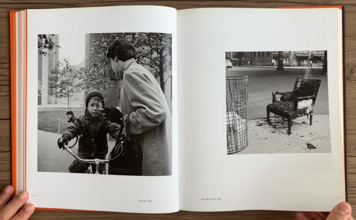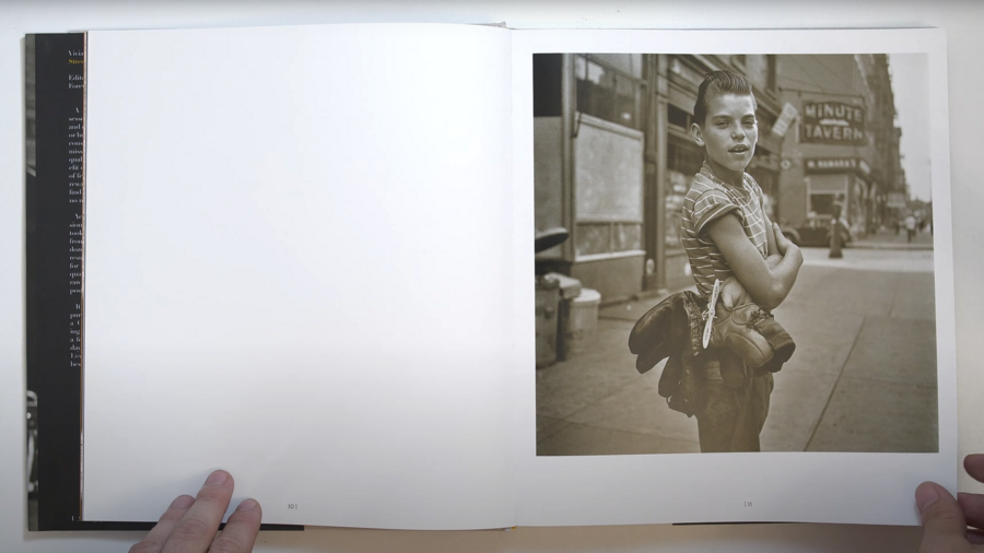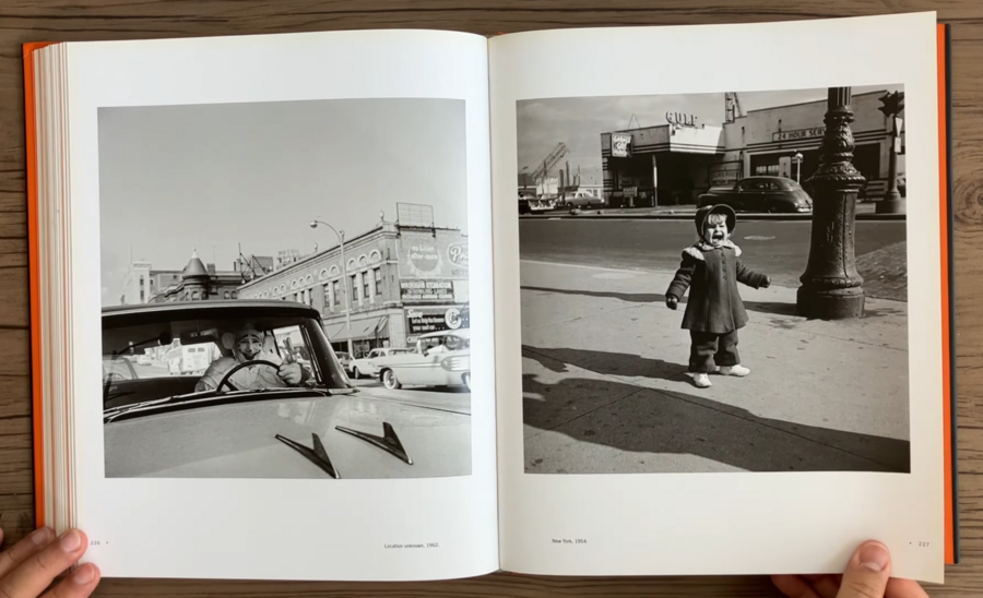 На протяжении всей книги, мы действительно сфокусированы на исключительно уличных фотографиях, но тем не менее сквозь них можно целостно отследить что привлекало внимание Вивиан в окружающей ее действительности: портреты детей дворов Нью-Йорка, их неподдельные эмоции, портреты людей из маргинальных окраин в контрасте с высокообеспеченными дамами центральных улиц, обратная сторона города за его успехом, красивые тонкие детали в игре света и тени, геометрии ландшафтов.