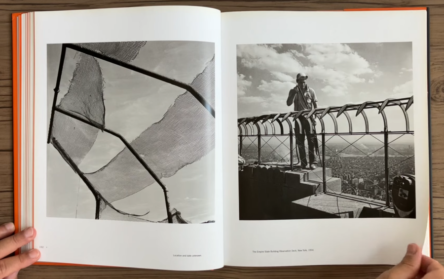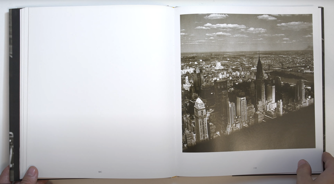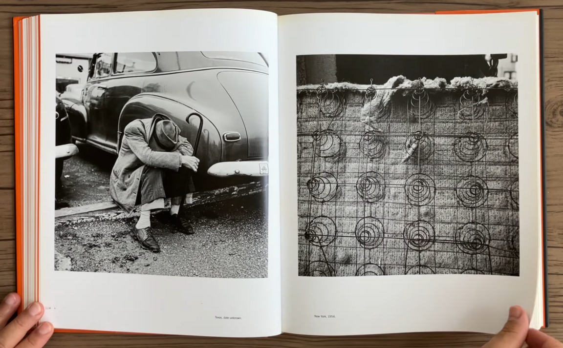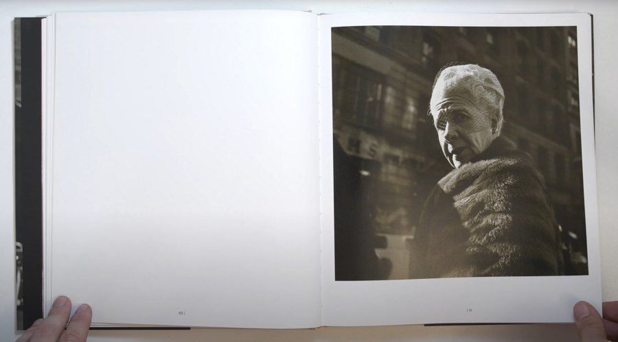 Книга уже имеет иной размер более прямоугольный, что позволяет совмещать разные по размеру изображения. Стоит отметить, что только с 40 страницы начинаются развороты с работами Майер, читатель полностью контекстно подготовлен к предстоящему просмотру.