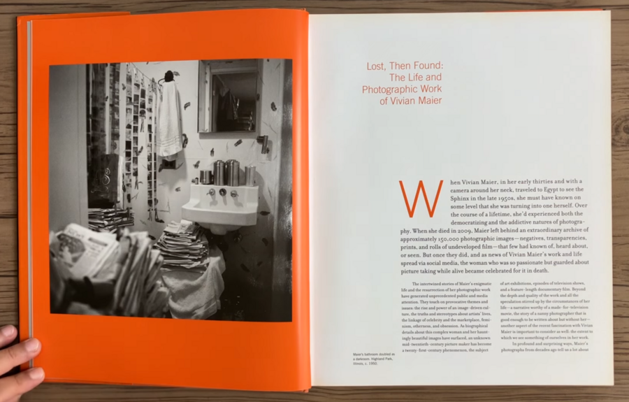 Книга так же имеет черно-белую обложку, но уже с более глубоким оранжевым акцидентным цветом в заголовках и внутренних сторонах суперобложки, ссылая нас к предыдущей коллекции (продолжение жёлтого). Здесь книга имеет жёсткую структуру, выделяя при этом разворот с содержанием, и дает понять читателю, что Майер не просто была страстно увлечена фотографией, а была настоящим профессионалом: очень заметно количество сопровождающего текста в начале в сравнении с предыдущей версией книги.