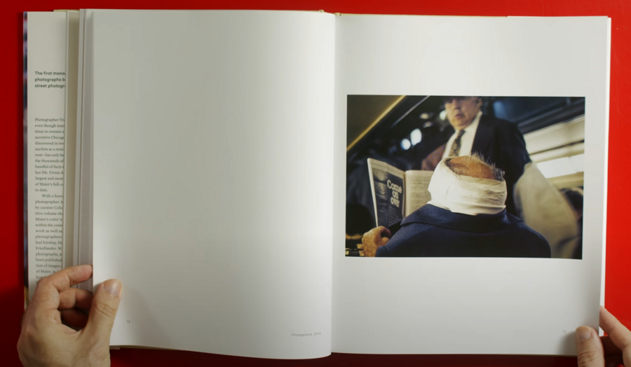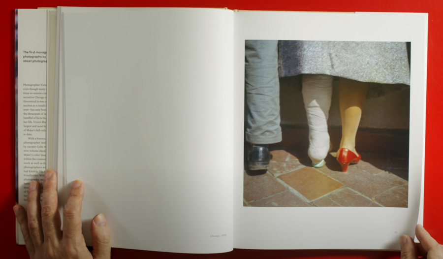 Книга, окутанная суперобложкой с яркой работой Вивиан с акцентом на красный цвет, также является отсылкой к предыдущим версиям изданий (жёлтый -> оранжевый -> красный), где усиление цвета символизирует продолжение и углубление в творчество Вивиан. Однако сам твердый переплет имеет основной очень нейтральный, еле уловимый светло оливковый цвет, для уравновешивания самого содержания фотокниги, а именно ее обилия ярких разноцветных отпечатков. Более того, фотокнига ссылает нас к предыдущему изданию, дублируя тот же самый шрифт, суперобложку и структуру. Вновь прямоугольный формат в виду съемки с помощью другой камеры, изображения теперь имеют не равностороннее соотношение, что позволяет располагать изображения по одному кадру на весь разворот и рассмотреть каждую деталь в полном объеме.