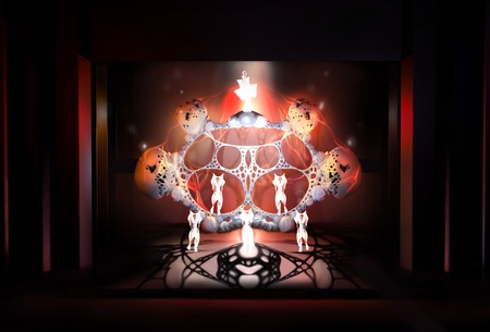 В основе сценографической концепции трагедии Эсхила «Орестея» лежит идея хаоса и порядка — вечного цикла разрушения и возрождения, через который проходит как Вселенная, так и человеческое общество.
