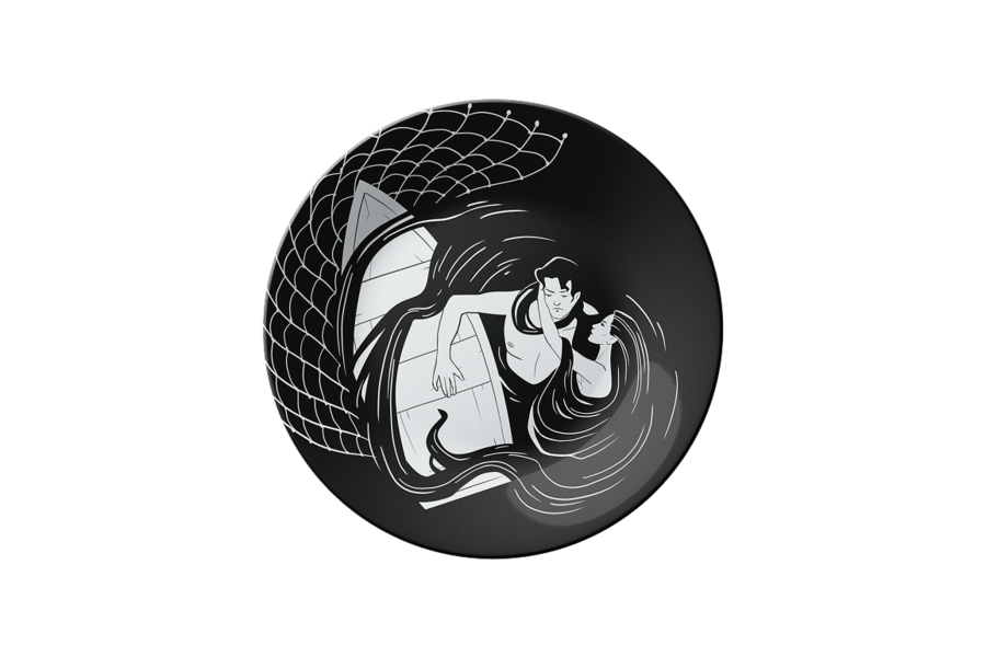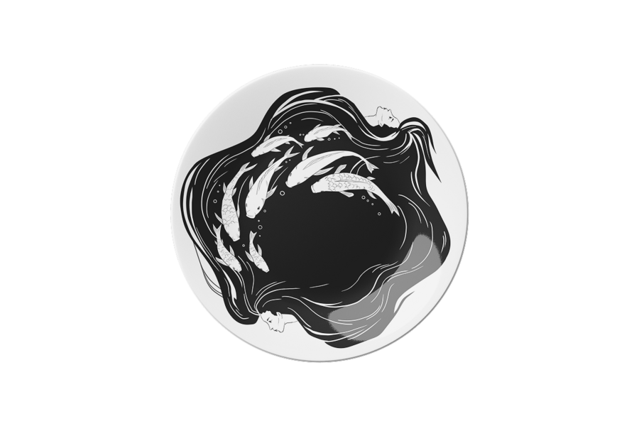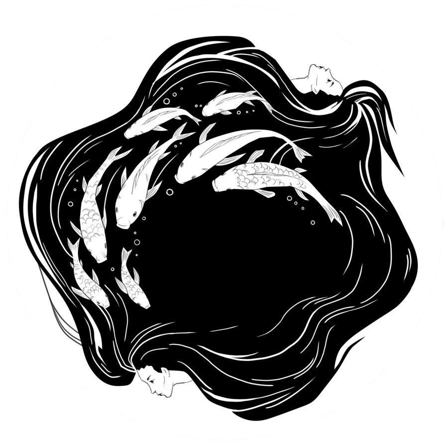 Центральным мотивом становится переплетение — волос, хвостов, тел и подводных растений, как символ поглощающего сознание плена