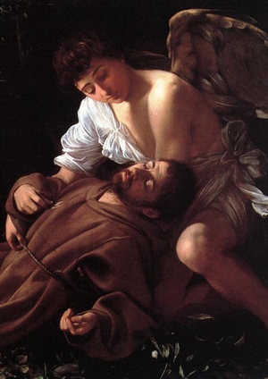 Начать анализ религиозной живописи итальянского художника хочу с одной из самых ранних его произведений, изображающее историю из Библии, является «Экстаз святого Франциска» 1595 года.