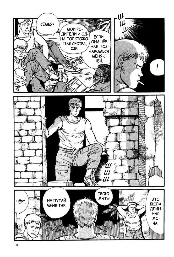 Иногда мысли героя помещаются в квадратные баллоны, как на размещенном выше левом фрагменте, а иногда они находятся вне баллонов, как в самом низу правого фрагмента. Часто это развитие персонажа через его внутренний мир, его рассуждения с самим собой, которые не требуют реакции от внешнего мира, эдакий эффект «закадрового голоса», и, как следствие, восприятие этого голоса как спокойного и задумчивого.