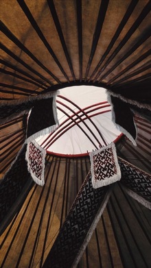 Узоры солнца и луны Зачастую солнце изображено в виде круга или концентрических кругов, в то время как луна изображена в виде полумесяца. Эти два символа олицетворяют два основных космических тела, которые имеют огромное значение в жизни кочевников. Солнце ассоциируется с жизненной силой, теплом и богатством, в то время как луна символизирует время, цикл и тайну.