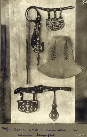 Дудин С. М. Два кожаных пояса «кисе» и войлочная вышитая шапка — http://collection.kunstkamera.ru/entity/OBJECT/89162?page=2&fund=44&person=3513456ðnos=3507391& index=90