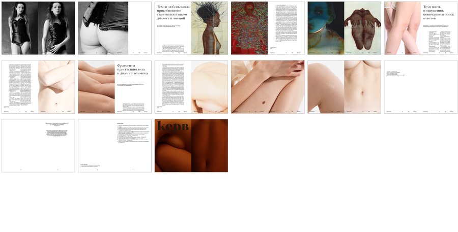 Журнал обращает внимание на: телесность как форму самопознания свободу выбора в одежде, позе, образе уважение к несовершенствам, изгибам, текстурам кожи тело как историю, память, присутствие и ощущение