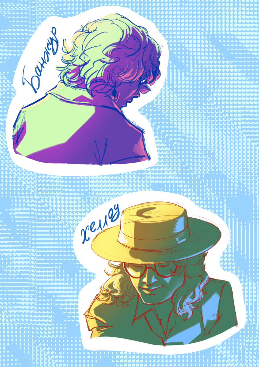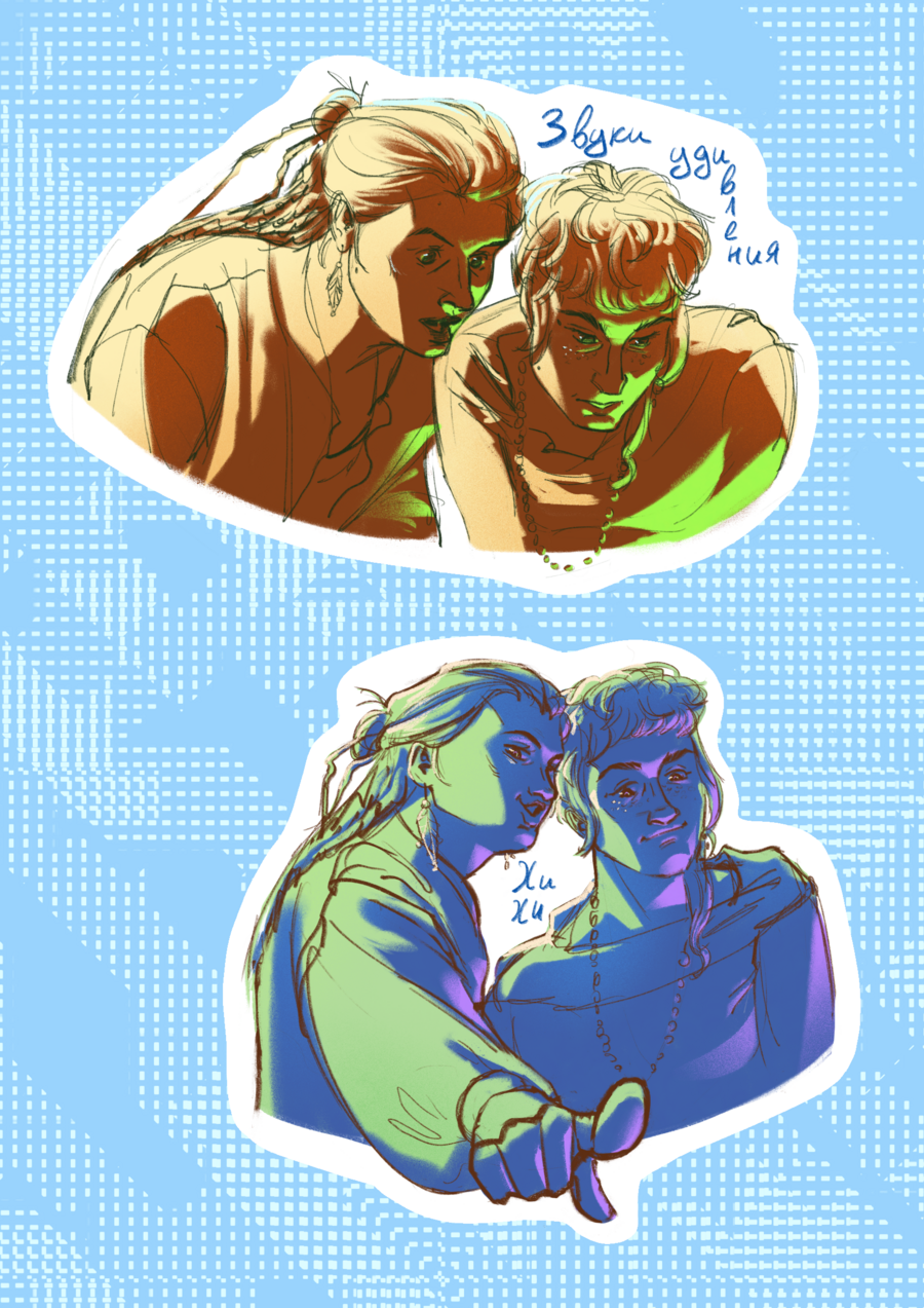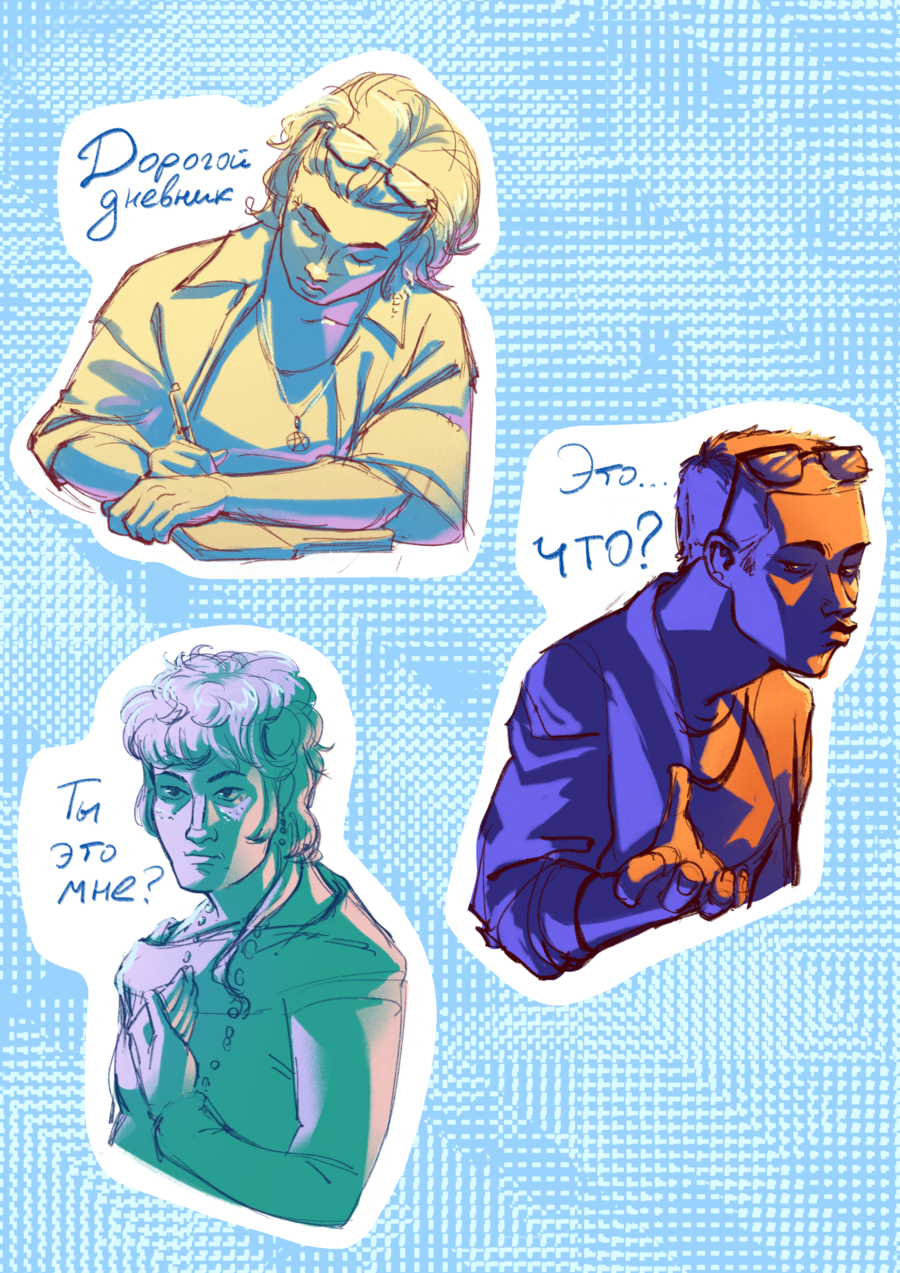 Так же эти стикеры можно сложить в маленькие комиксы. И никто не узнает как должно бы было быть, потому что каждому стикеру присвоена своя особенная цветовая палитра.