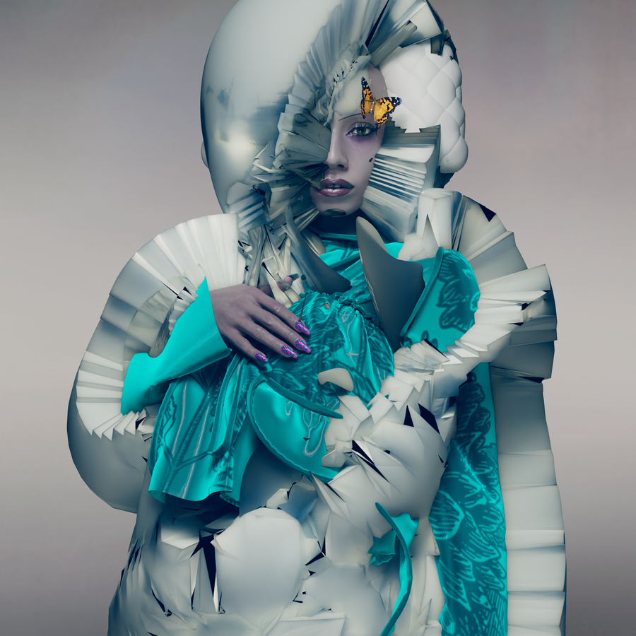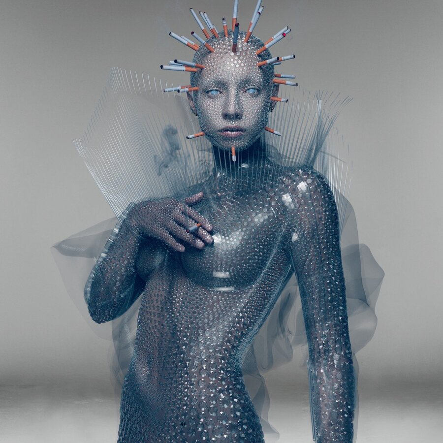 В съемке для Dazed в 2022 году использовались элементы NFT и цифровых технологий. Здесь мода становится не просто одеждой, а частью цифрового опыта, который можно приобрести в виртуальном мире. Эта тенденция в полной мере соответствует философии виртуального реализма, где материальный мир уступает место цифровым образам и аватарам.