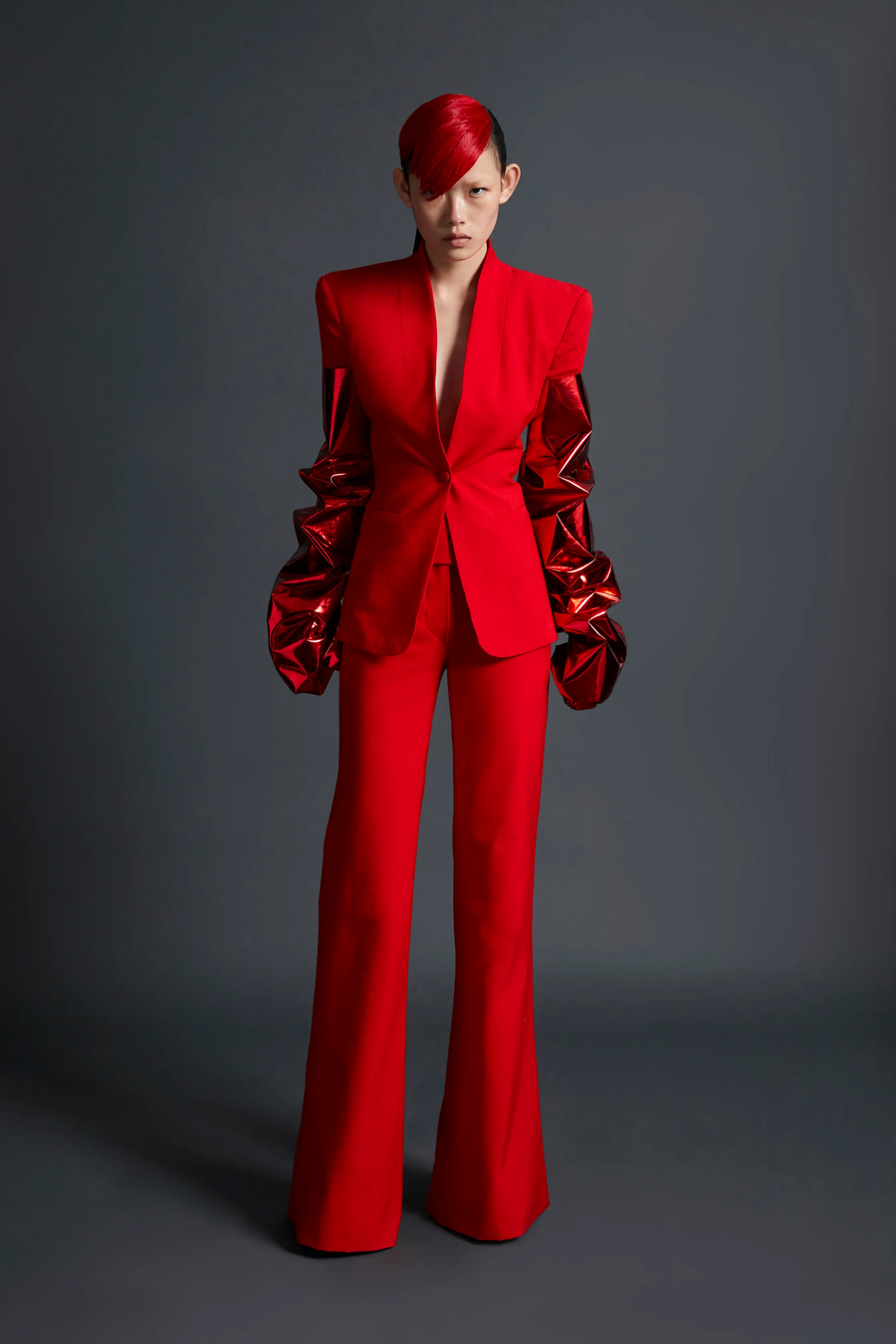 Контркультура находит такую же реализацию в эстетике Demna Gvasalia для Balenciaga, где коллекции часто критически осмысляют массовую коммерцию. Например, показ Balenciaga S/S 2022 перенес зрителей в красное пространство, которое имитировало напряженность между социальными классами засчет образов.