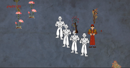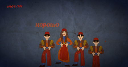 После мини-игры на ритм, к линии кочари прибавляется новый танцор.