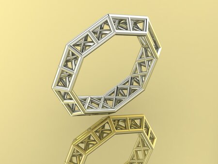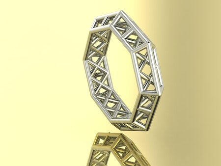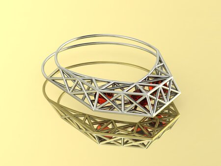 «Янтарный мёд» — это художественный диалог между первозданной природой и строгой цифровой геометрией. Необработанный янтарь, излучающий тёплое, насыщенное сияние, словно застыл во времени, заключённый в безупречные шестигранные и треугольные сетки.