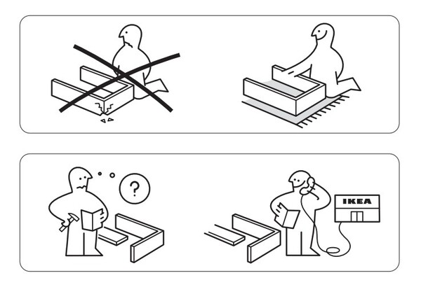 В остальном же, все шаги проиллюстрированы схематично, чтобы их можно было понять и совершить без знания языка, чтобы абсолютно каждый мог собрать мебель, изготовленную IKEA.