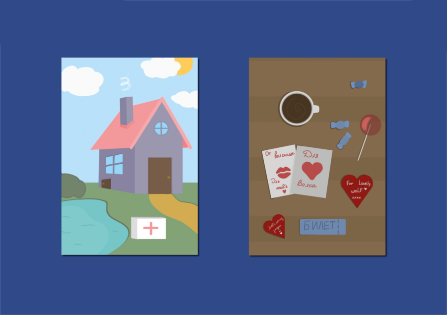 Карты Они помогают придумать предлог для волка, чтобы он вернулся. На картах нарисованы разные предметы, пейзажи или интерьеры, которые могут стать причиной почему злодею лучше вернуться.