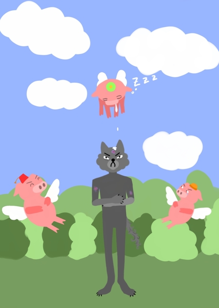 Волк работает в сказке злодеем и у него ничего не получается. Поросятам всегда удается сбежать, а хвост постоянно болит от ожогов. Главный злодей сказки устает, и у него случается выгорание. Волк решает покинуть проект три поросенка.