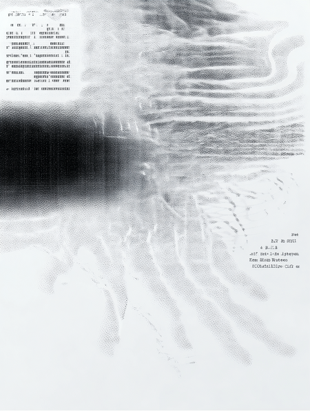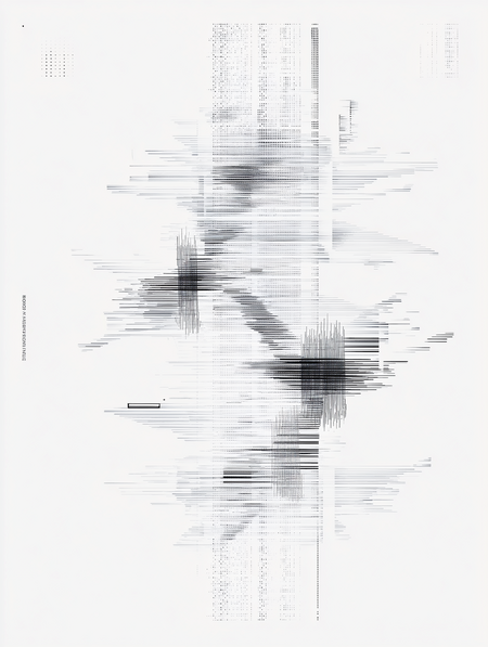art and science poster design, white background, grey monotype typography, ascii effect, pixels effect, Field Wave Interference pattern wave interference, experimental design layout, Bauhaus meets y2k aesthetics, minimalist yet chaotic composition, generative touchdesigner graphic