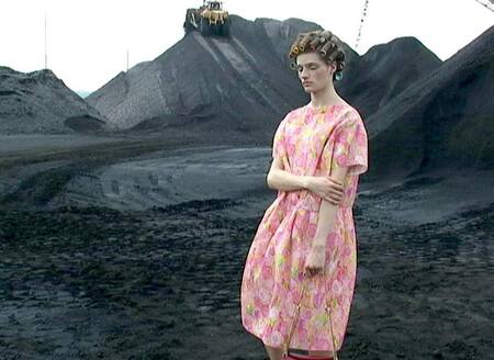 Яркий колорити цветочный принт, бигуди с короткой стрижкой на фоне рабочей, промышленой локации так же расскрывает этот «русский культурный код» того времени.