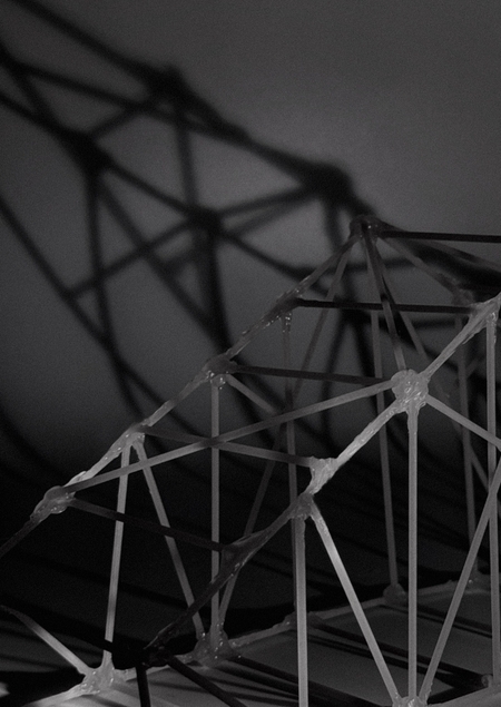 Именно гармония между мощной несущей аркой и изящной сеткой растяжек, эффективно распределяющих нагрузку, и легла в основу модели.
