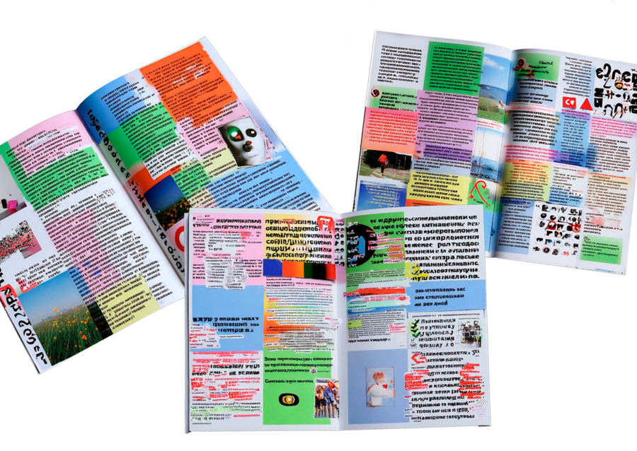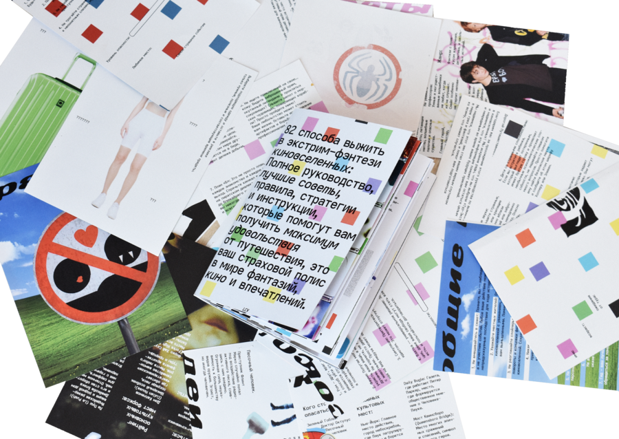 промпт на зин: мне нужно сделать несколько разворотов зина в таком же стиле как на референсах (y2k стиль)