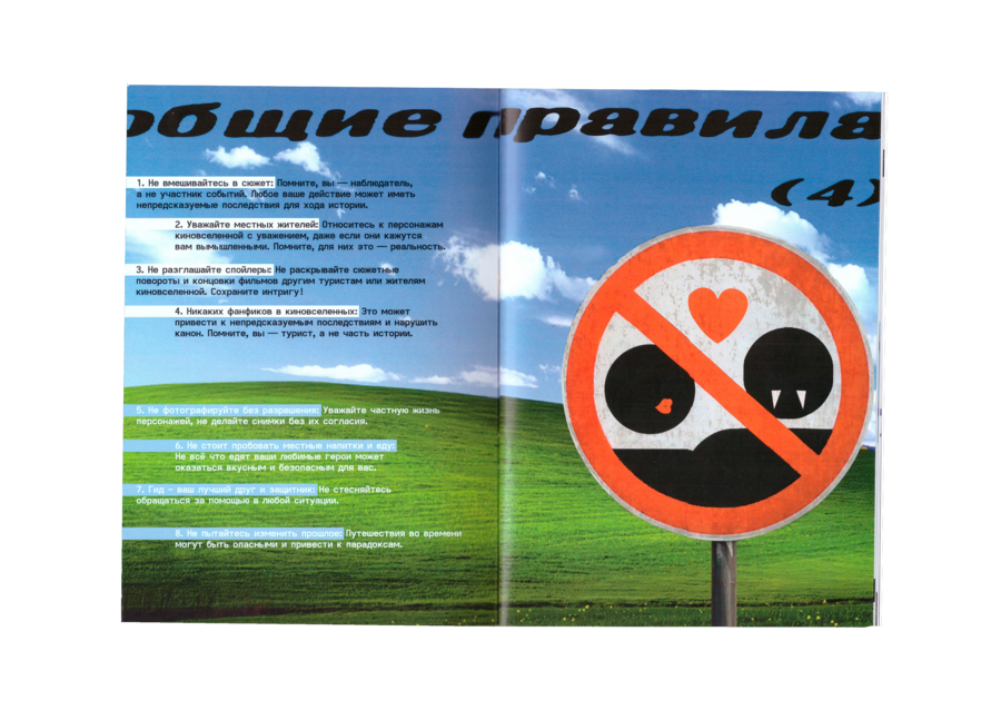 Зин от LCV — компактное печатное руководство по выживанию в фэнтези-киновселенных, объединенных конкретным туром от турагентства. Фокус на практических советах, лайфхаках, мерах предосторожности.