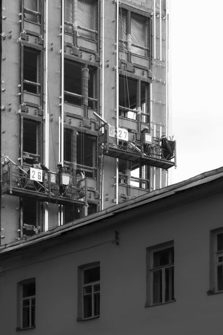 Я выбрала черно-белую фотографию, для четкости линий и форм в отражении ритмики центра Москвы.