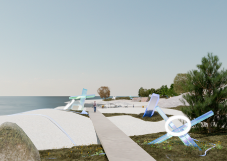 // В этом проекте я бы хотела продолжить идею разбитого летающего корабля, чьи части разброшены по всему парку. Для работы я взяла наиболее показательные картинки с предыдущего проекта — пляж, где космических деталей больше всего. Идея стартапа заключается в открытии этого пляжа.