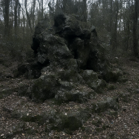Промт 2: «photo photography of nature and plants, a rocky outcrop in the woods, now transformed into a dreadful altar with unnatural bone-like formations, dark ritual remnants, ominous shadows and visceral horror»
