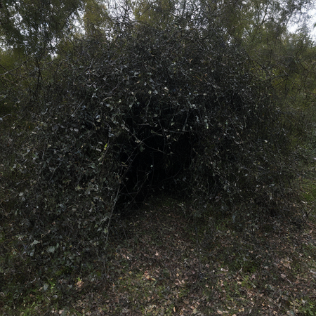 Промт 1: «photo photography of nature and plants, a dense thicket of thorny bushes, now transformed into a terrifying trap with moving vines, human-like shapes trapped within, blood-like sap and suffocating darkness»