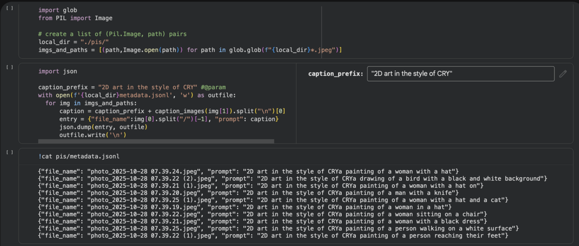 Следующим этапом стало создание подписей к каждому изображению — этот шаг завершал подготовку моего датасета для обучения нейросети.