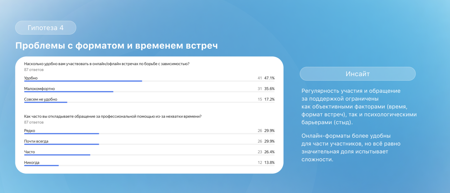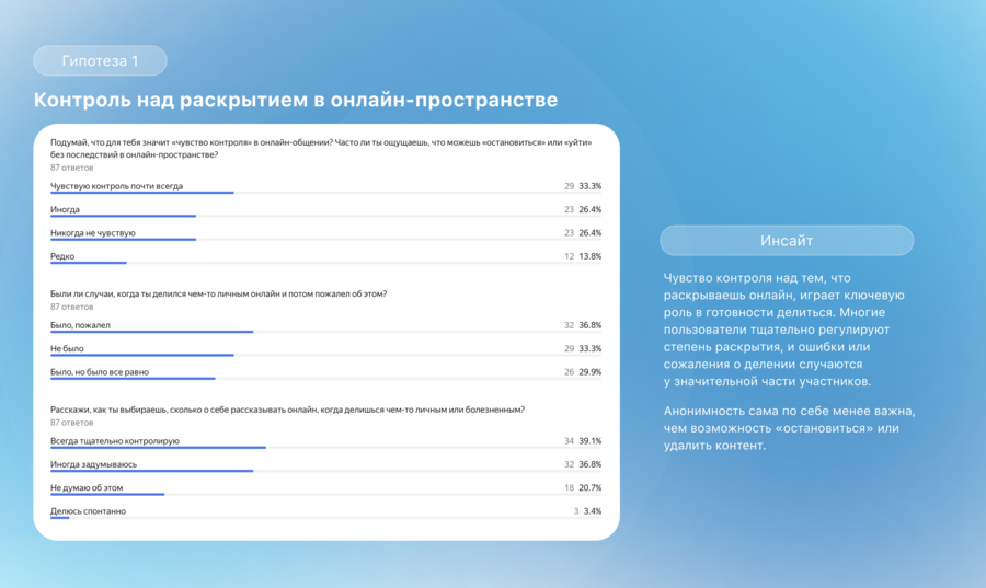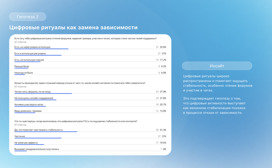 Эти выводы подтверждают необходимость продукта, который сочетает безопасное пространство, поддержку через цифровые ритуалы и возможность узнавать себя в историях других.