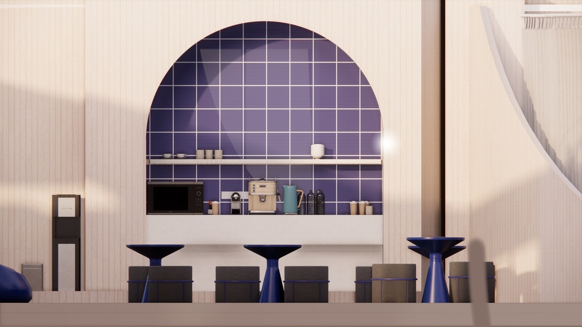В дизайне использованы нейтральные цвета, простая мебель для снижения визуального шума и улучшения концентрации