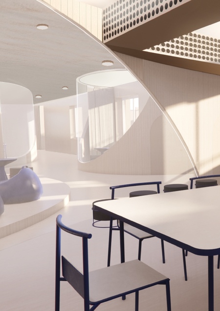 Минимализм учебного пространства ориентированна на функциональность, простор и спокойную обстановку