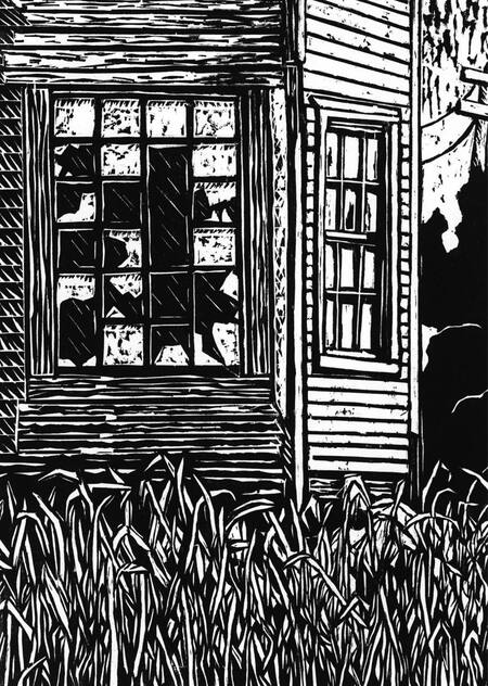 Техника работы с высокой печатью предлагает множество способов создания работ, в том числе и в жанре хоррор. Хоть изначально это не было заложено в технологию, со временем многие ее особенности стали ассоциироваться с известными хоррор-феноменами.