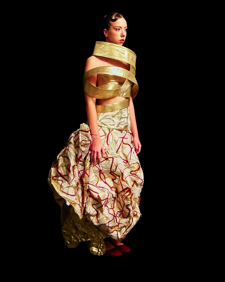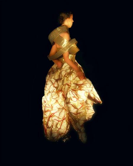 Утраченная элегантность возрождается в новой оболочке, уже укрепленной и уникальной. Исторические силуэты, распавшись на фрагменты, вновь обретают целостность через создание абсолютно новой формы. Хрупкость превращается в прочность, следы времени — в украшение, закользованное в непрерывном течении, а вещь — в артефакт, хранящий память о своих прежних воплощениях.