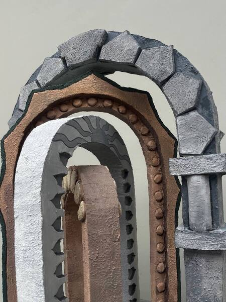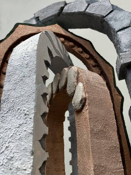 Каждая арка содержит характерные черты здания, но не повторяет элементы в точности