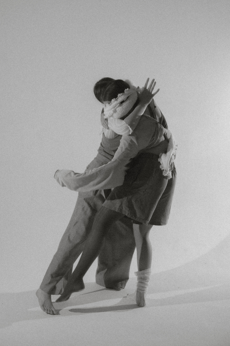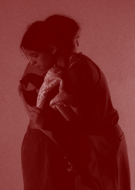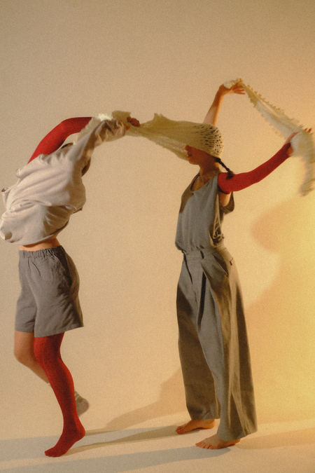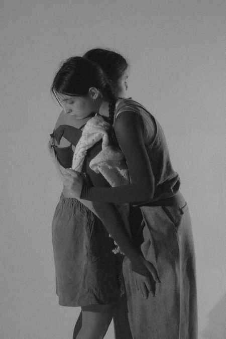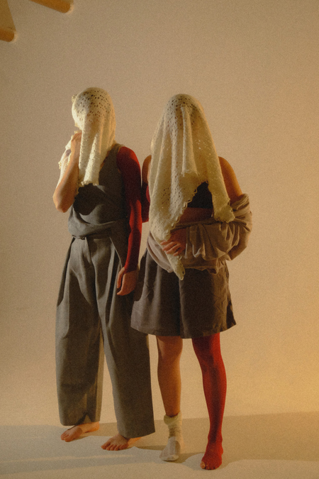 Перформеры — не статисты, а два голоса одной истории. История началась не с них, она тянется сквозь поколения, через руки матерей и бабушек, через жесты поддержки и молчаливого понимания. У каждой в руках платок — внешне похожие, но если присмотреться, край у каждого свой, связан вручную, уникален. Это то, что мы наследуем и то, что делаем сами; то, что дано и то, что выбрано. Ткань между ними становится живой материей — она соединяет и разделяет, обнимает и сковывает. Она третий участник, безмолвный свидетель.
