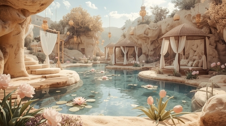Посреди каменистых пустынь и бурых песков находится сказочный спа-комплекс, вдохновленный моим временным архитектурным фасадом на первом курсе.